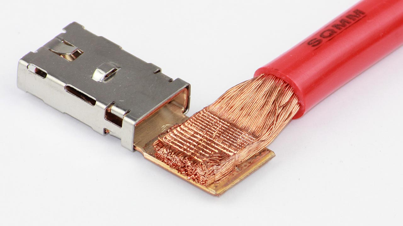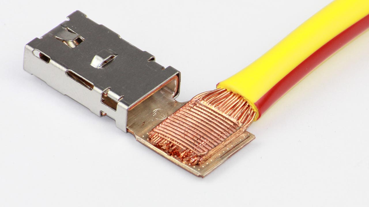 - マイクロプロセッサ制御の超音波接合機を使用すると、複数のワイヤを 1 つの端子にはんだ付けでき、ストレスのない低抵抗の接合が実現します。